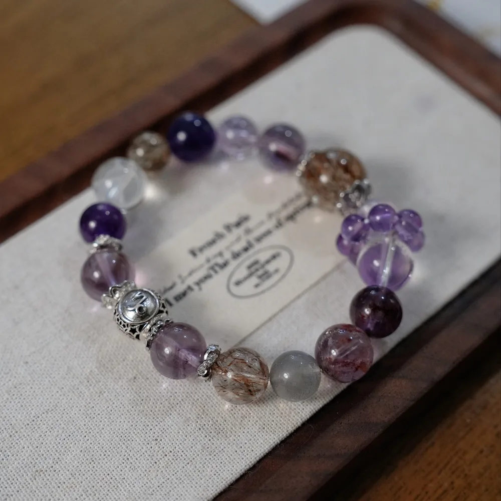 • Capricorn Zodiac Crystal Bracelet – White Crystal Protection & Black Gold Super 7 Bracelet for Warding Off Negativity and Manifesting Ambition